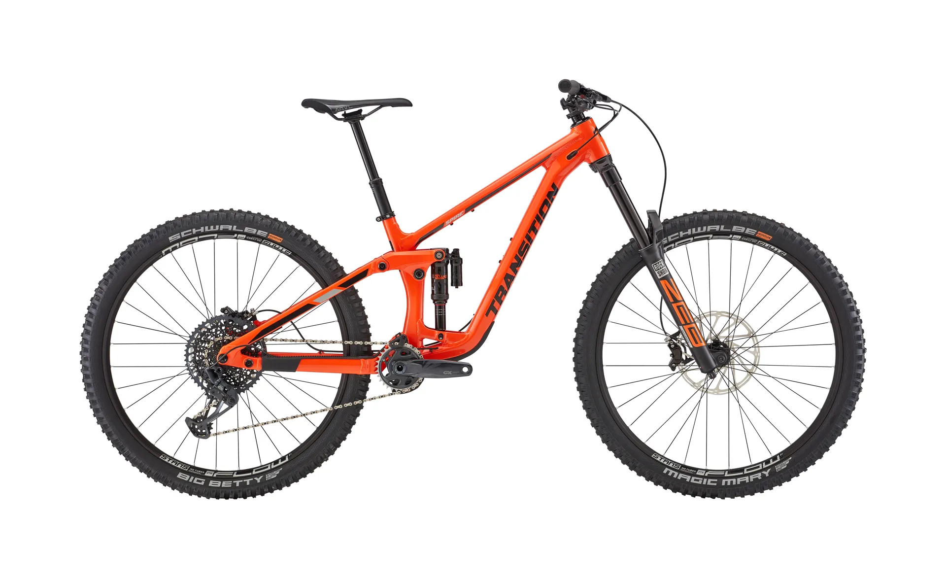 Spire complete bikes come equipped with suspension from Fox, Rockshox or Marzocchi to take the biggest of hits. Powerful four piston brakes with big rotors front and rear help keep you in control. Schwalbe Magic Mary and Big Betty super trail tires offer you great cornering traction and braking performance in a variety of conditions. All build levels and sizes include 165mm cranks, a oneup dropper post and a oneup bash guide to ensure nothing holds you back