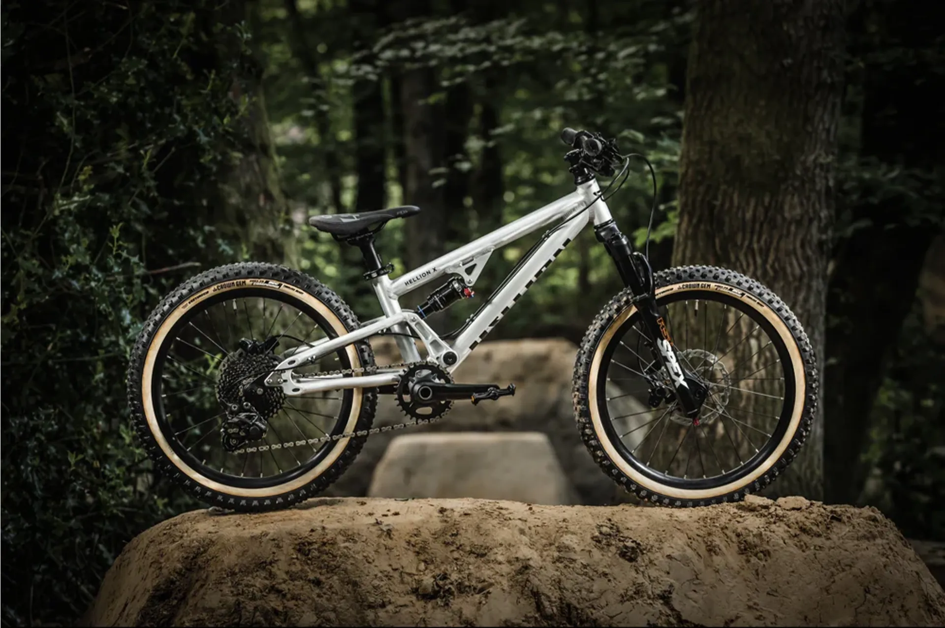 A 20” full suspension trail bike that’s happy on dirt jumps, single track and the junior circuit. Built for 6-8 year olds with a spec coveted by much, much bigger kids. The Hellion X20 doesn’t need to go this hard.